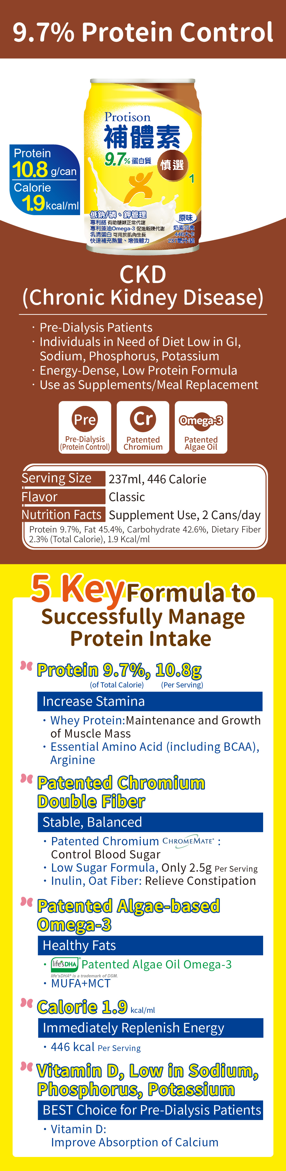 - 蛋白質僅10.8公克/罐,適合需謹慎攝取蛋白質者