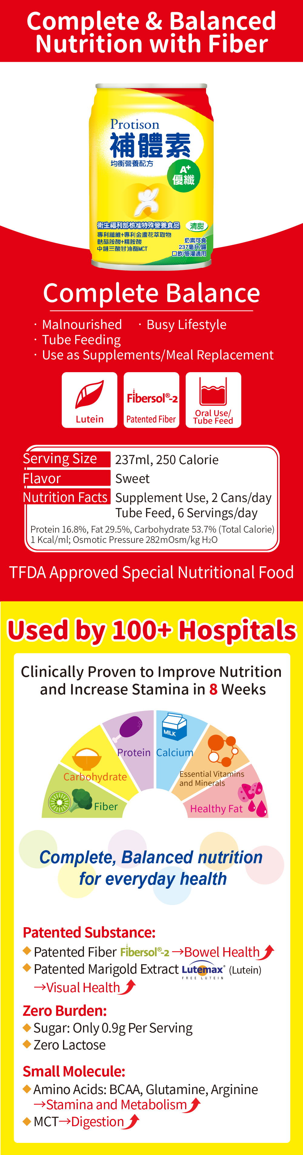 - 口飲/管灌適用,可當作唯一營養來源