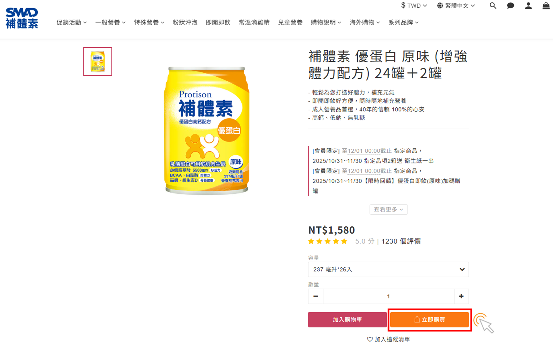請點開欲購買之商品頁面,挑選商品及數量,並按下『立即購買』。