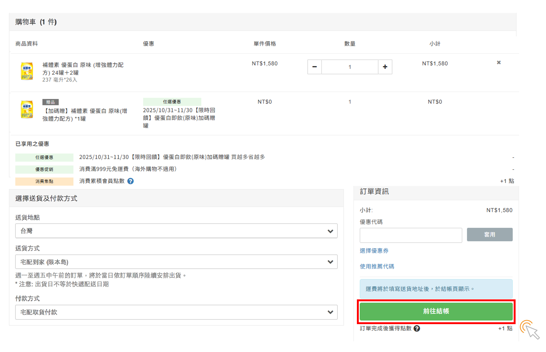 請輸入顧客與送貨資料,並勾選『我同意網站服務條款及隱私政策』。