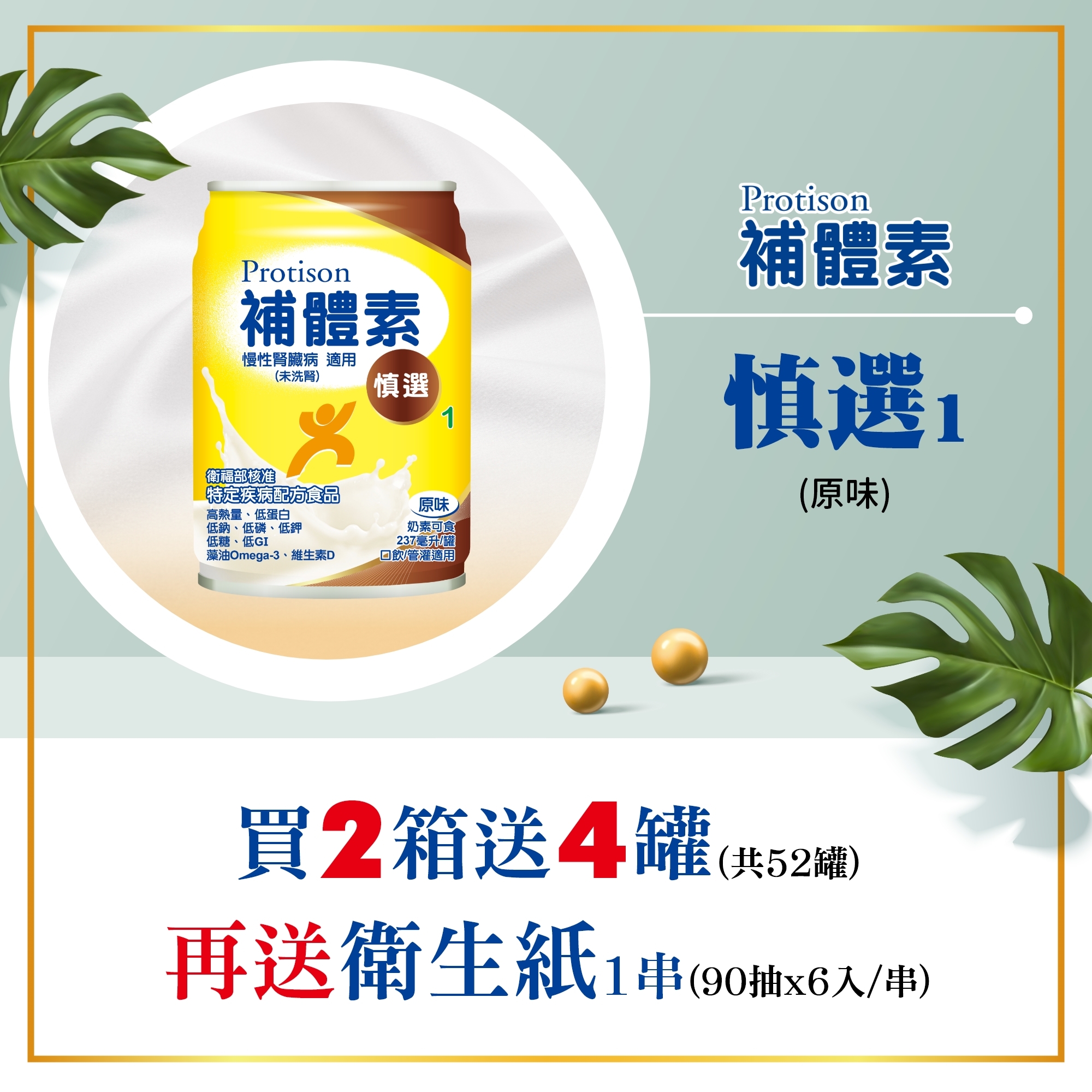 - 蛋白質僅10.8公克/罐,適合需謹慎攝取蛋白質者