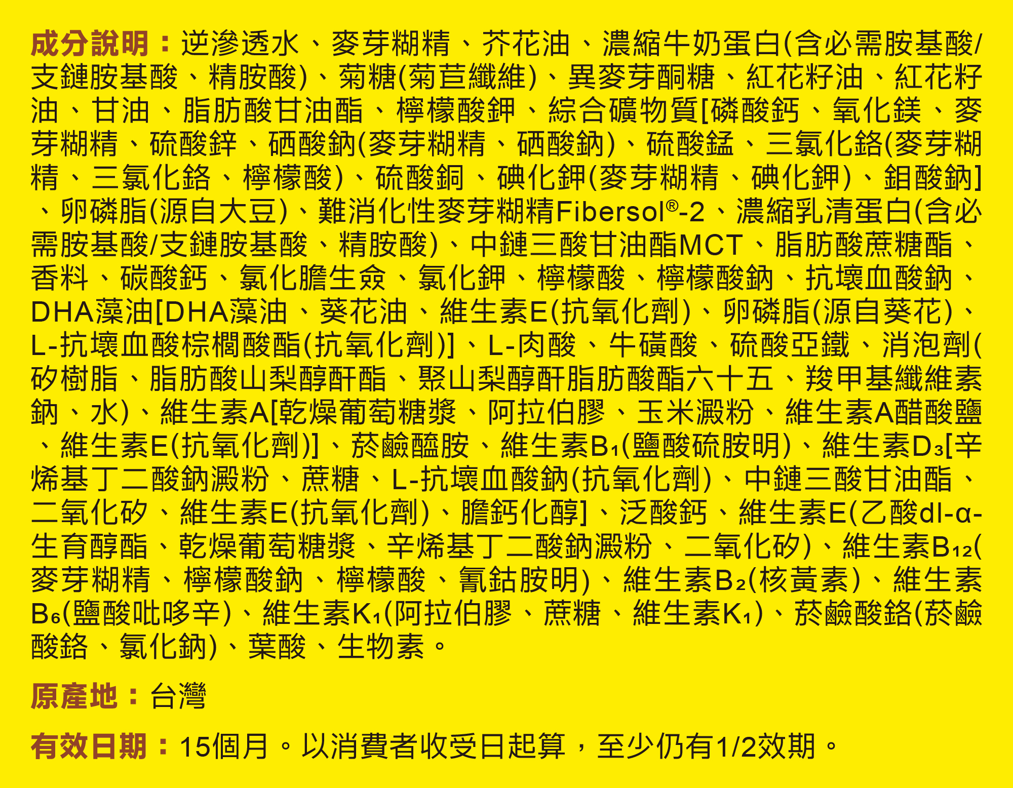 ●可用於管灌飲食,適用為唯一營養來源
