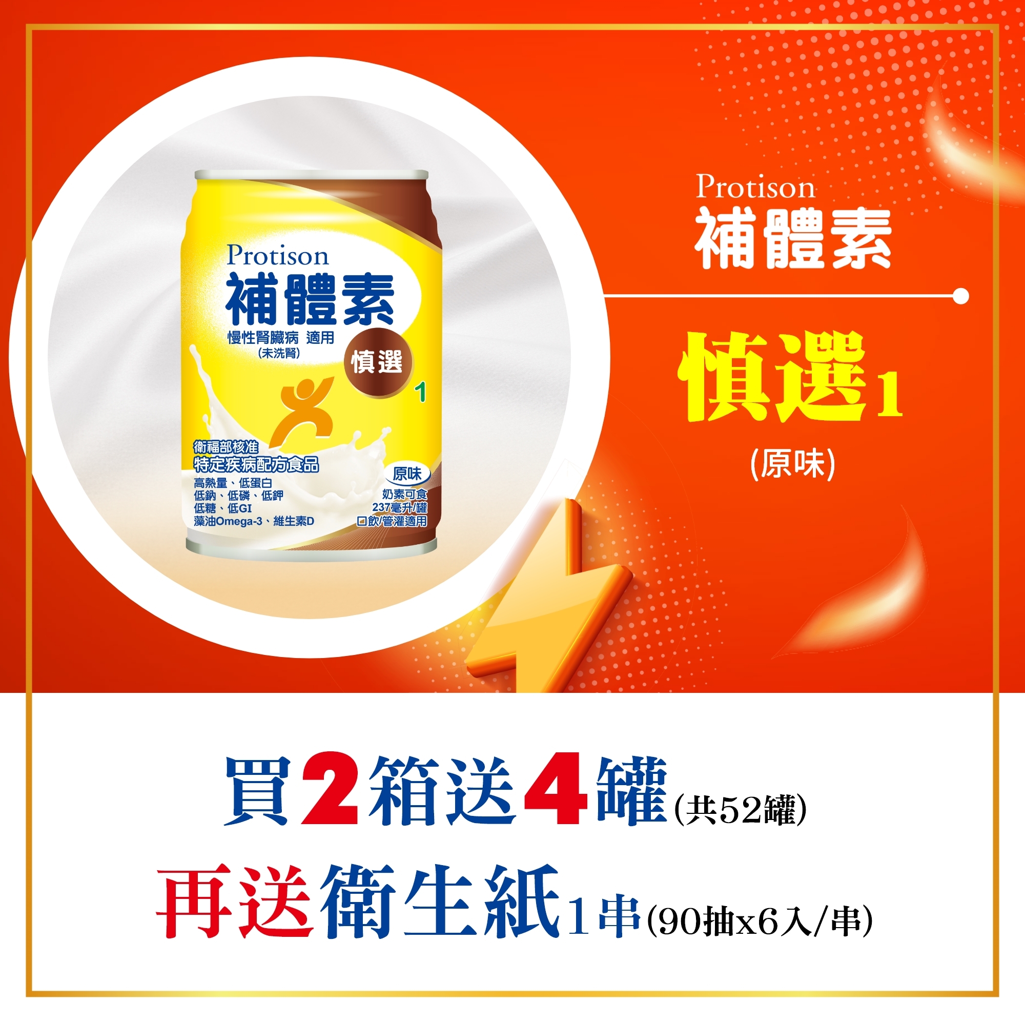 - 低鈉、低磷、低鉀、無乳糖