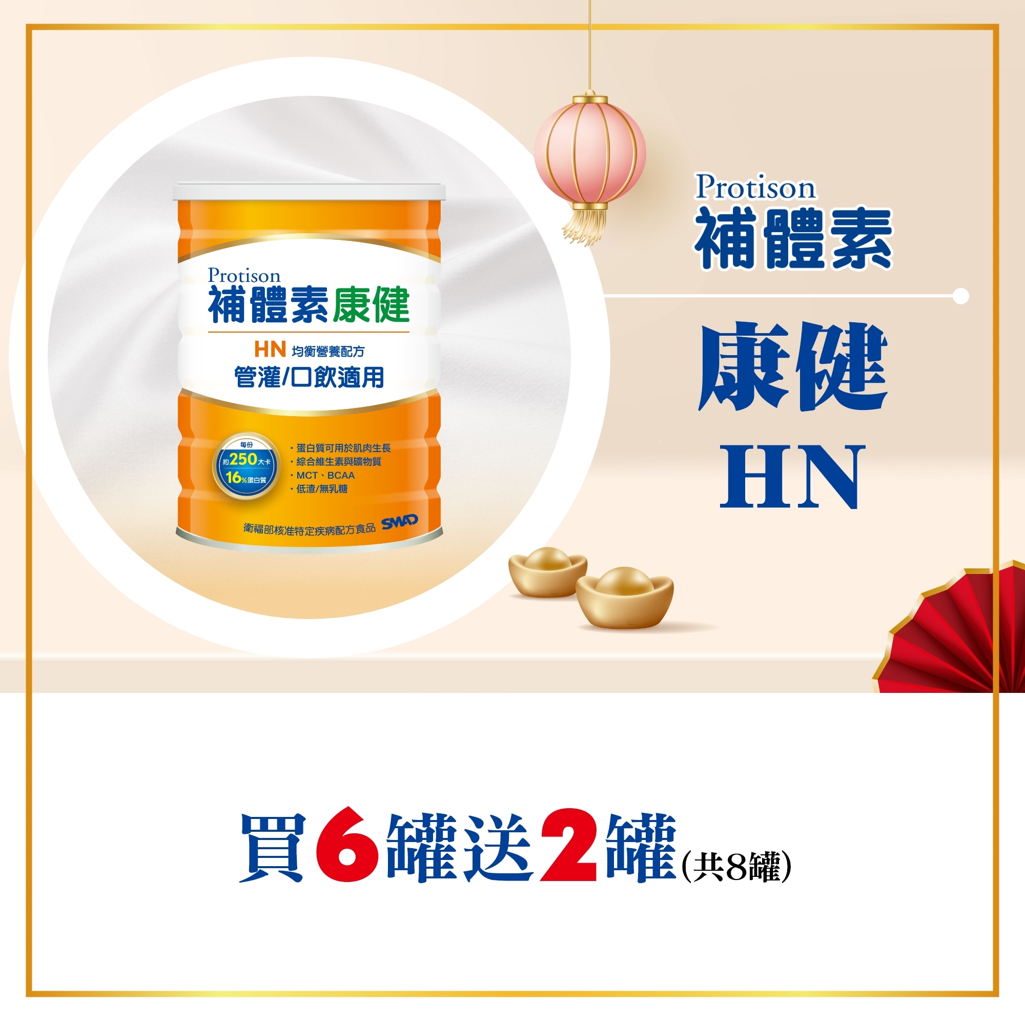 至2026-12-31T16:00:00.000+00:00截止 指定商品,2026/1/1~12/31【新品好康加碼】康健HN低渣(粉狀) 買6罐再送2罐!