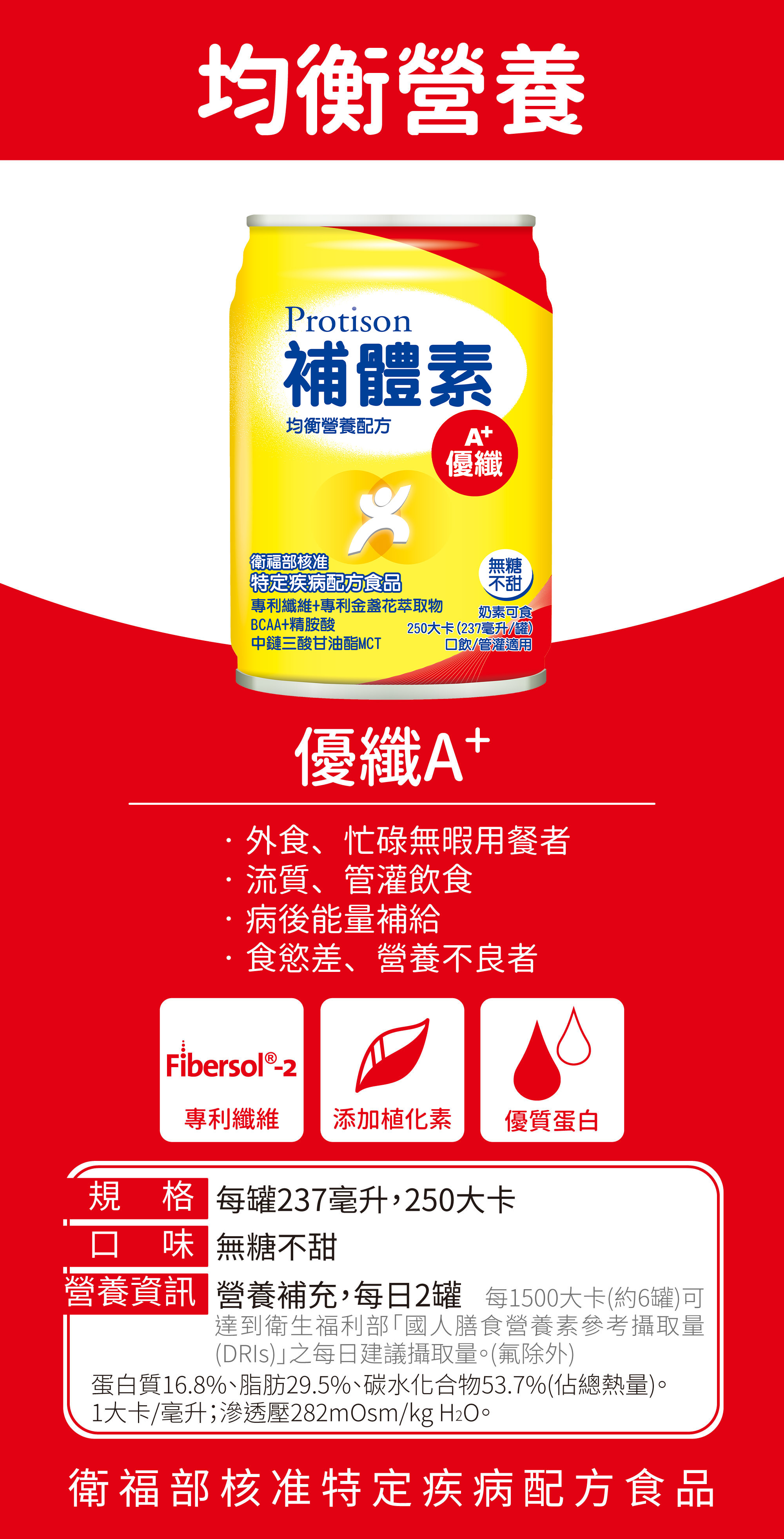 ●營養密度:1大卡/毫升;滲透壓:282mOsm/kg H2O