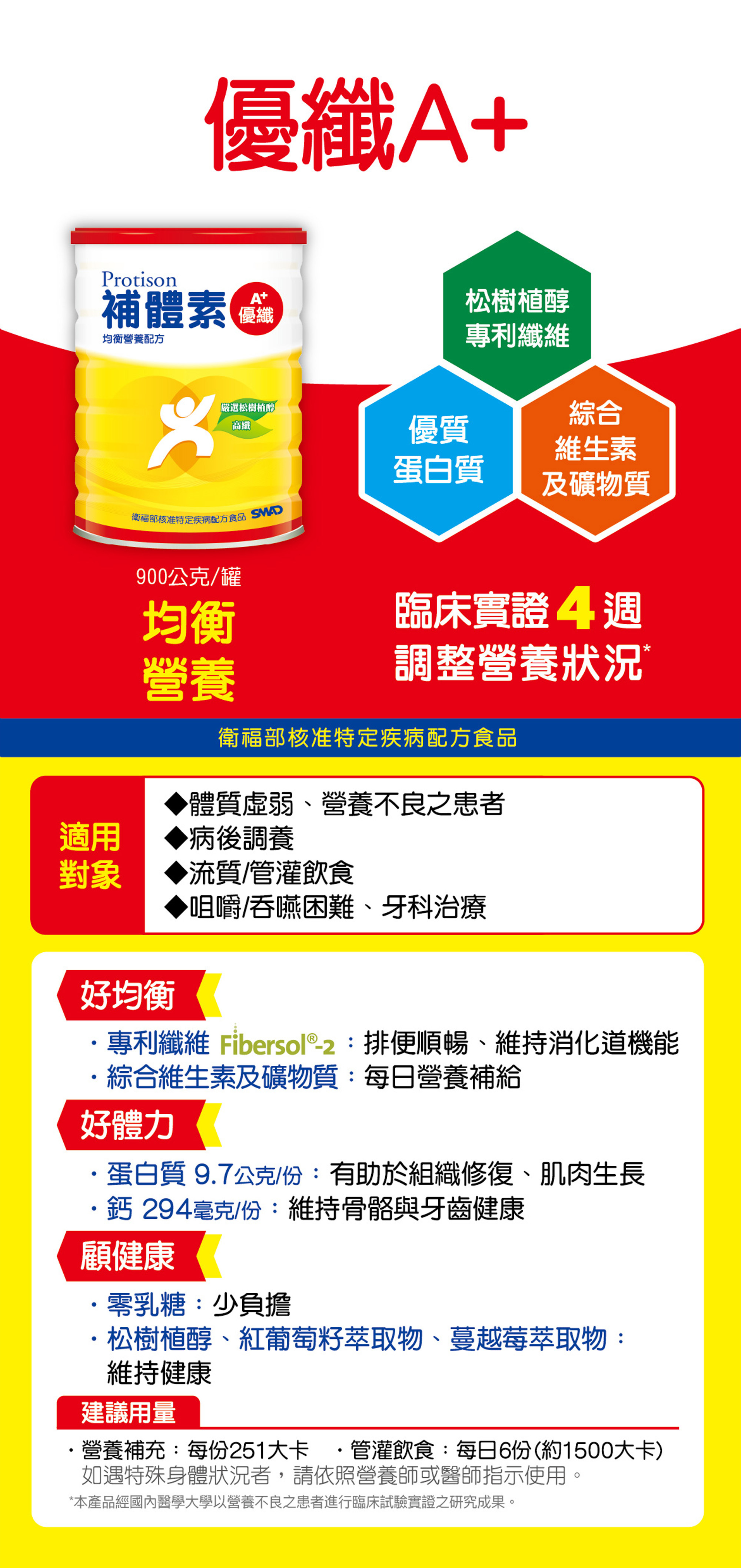 ●營養密度:1大卡/毫升;滲透壓:282mOsm/kg H2O