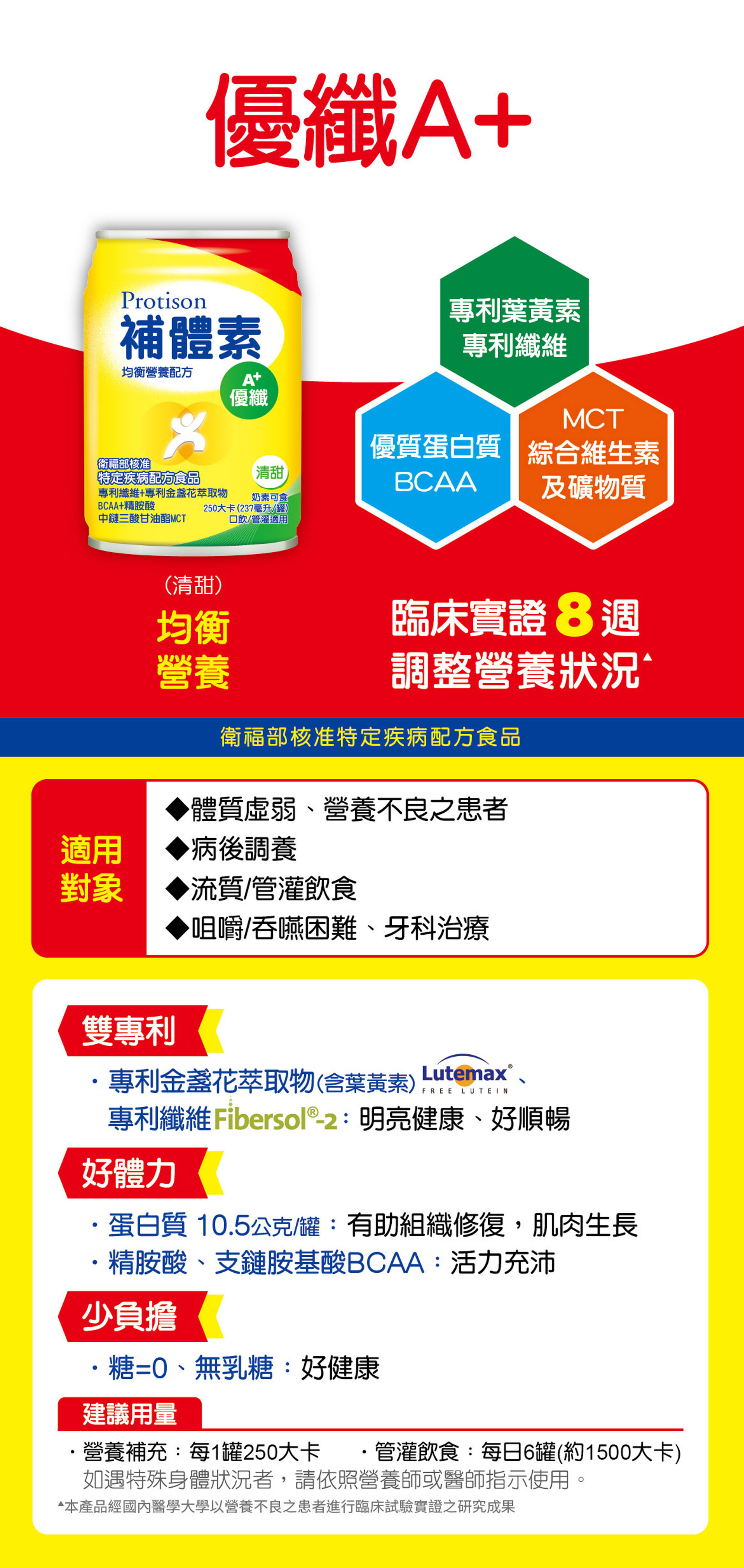 - 口飲/管灌適用,可當作唯一營養來源