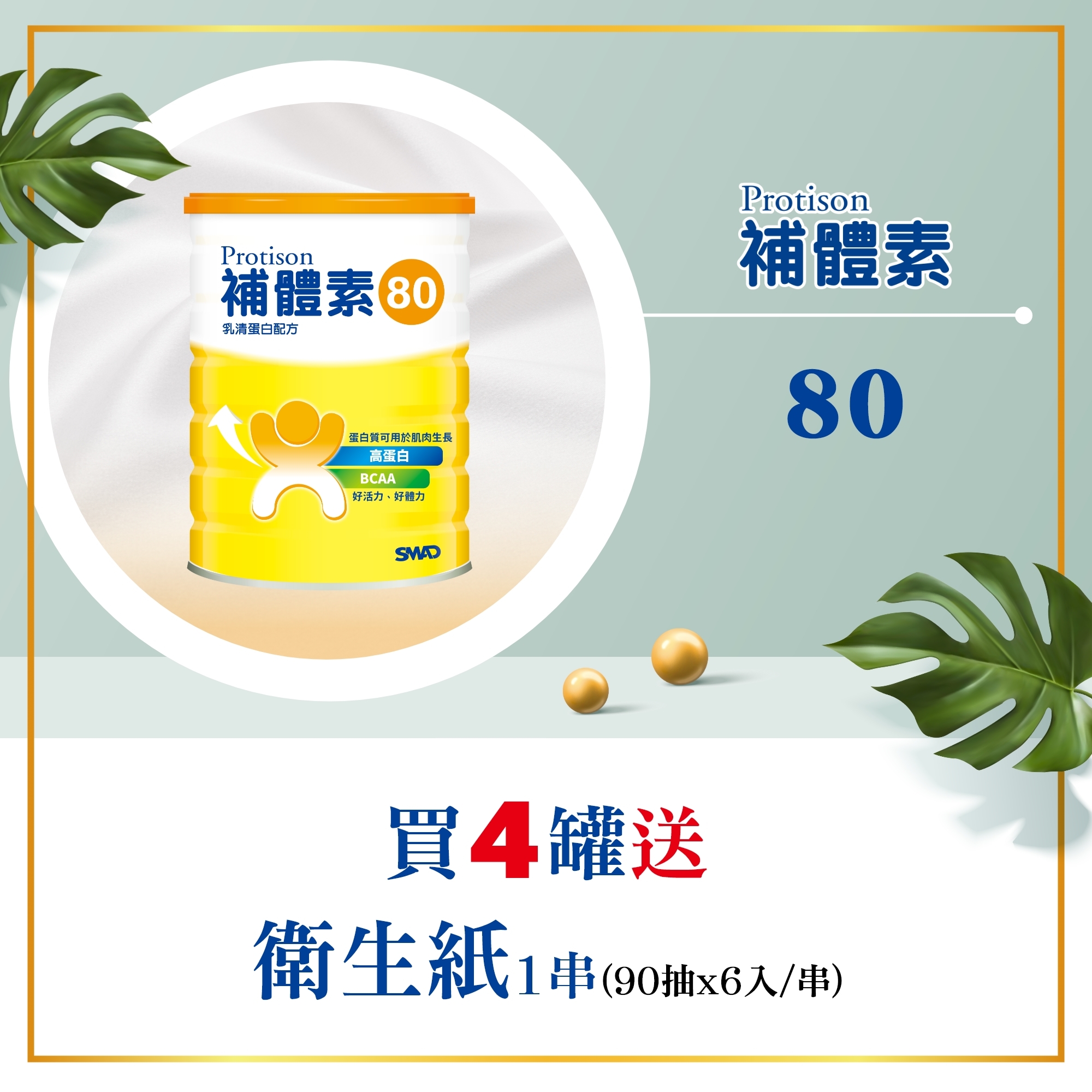 補體素80為乳清蛋白配方,蛋白質含量達80%,屬HBV高生物價蛋白質,營養價值佳,優質蛋白質可用於肌肉生長、有助於組織修復,幫助您調整體質、增強體力,為健康加分。