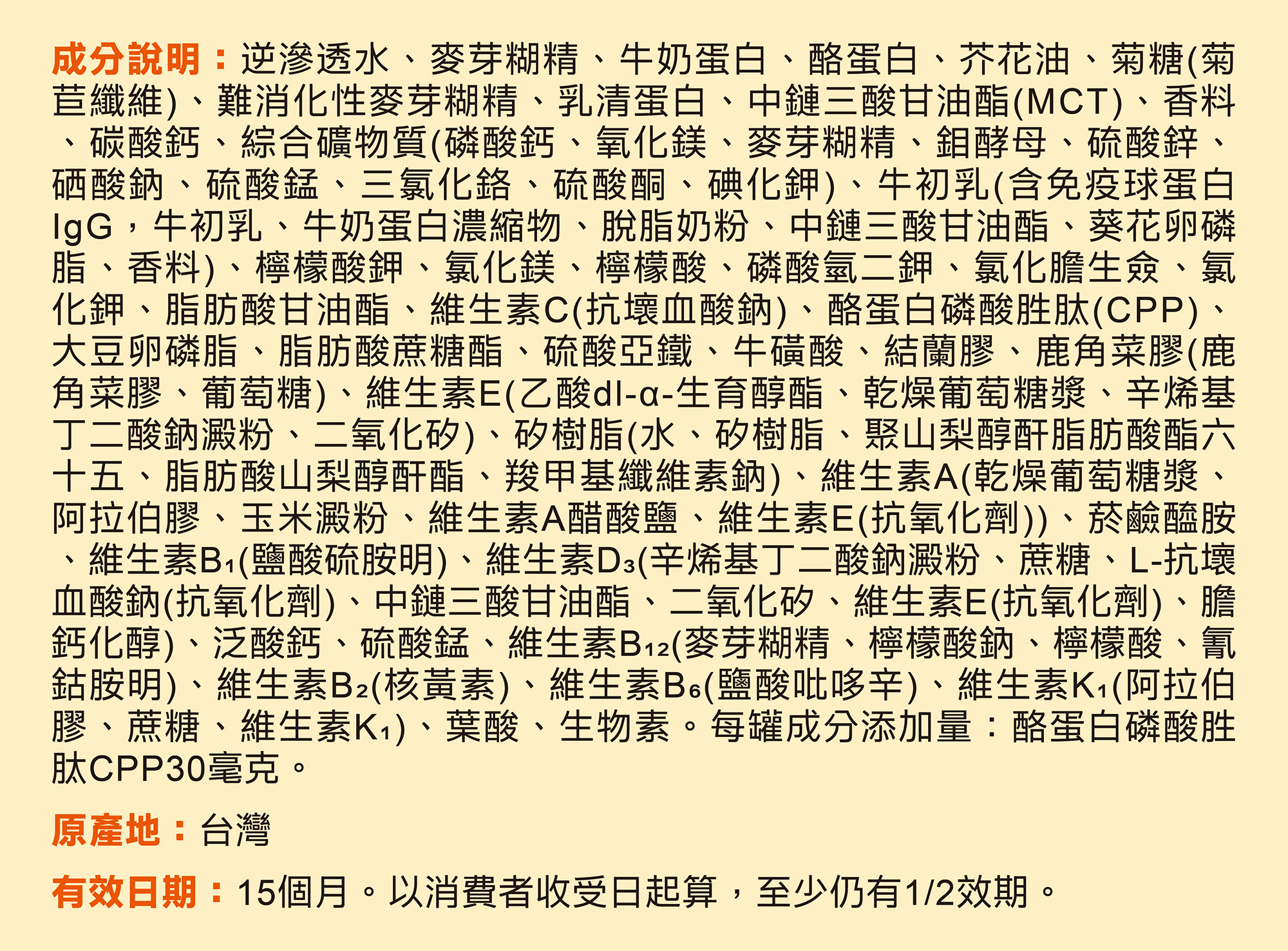 - 高鈣、低鈉、無乳糖