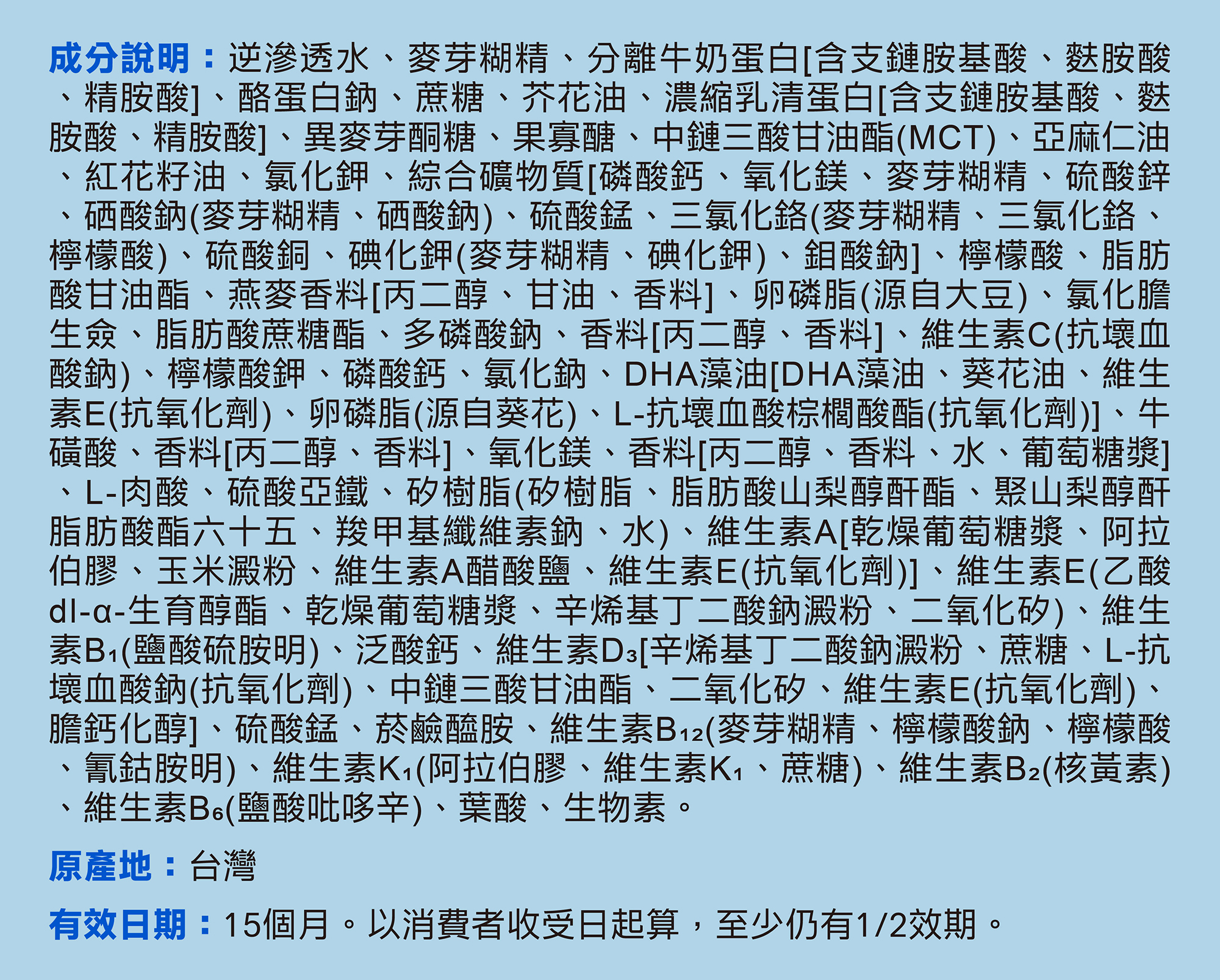- 低GI,0乳糖、不甜膩好順口