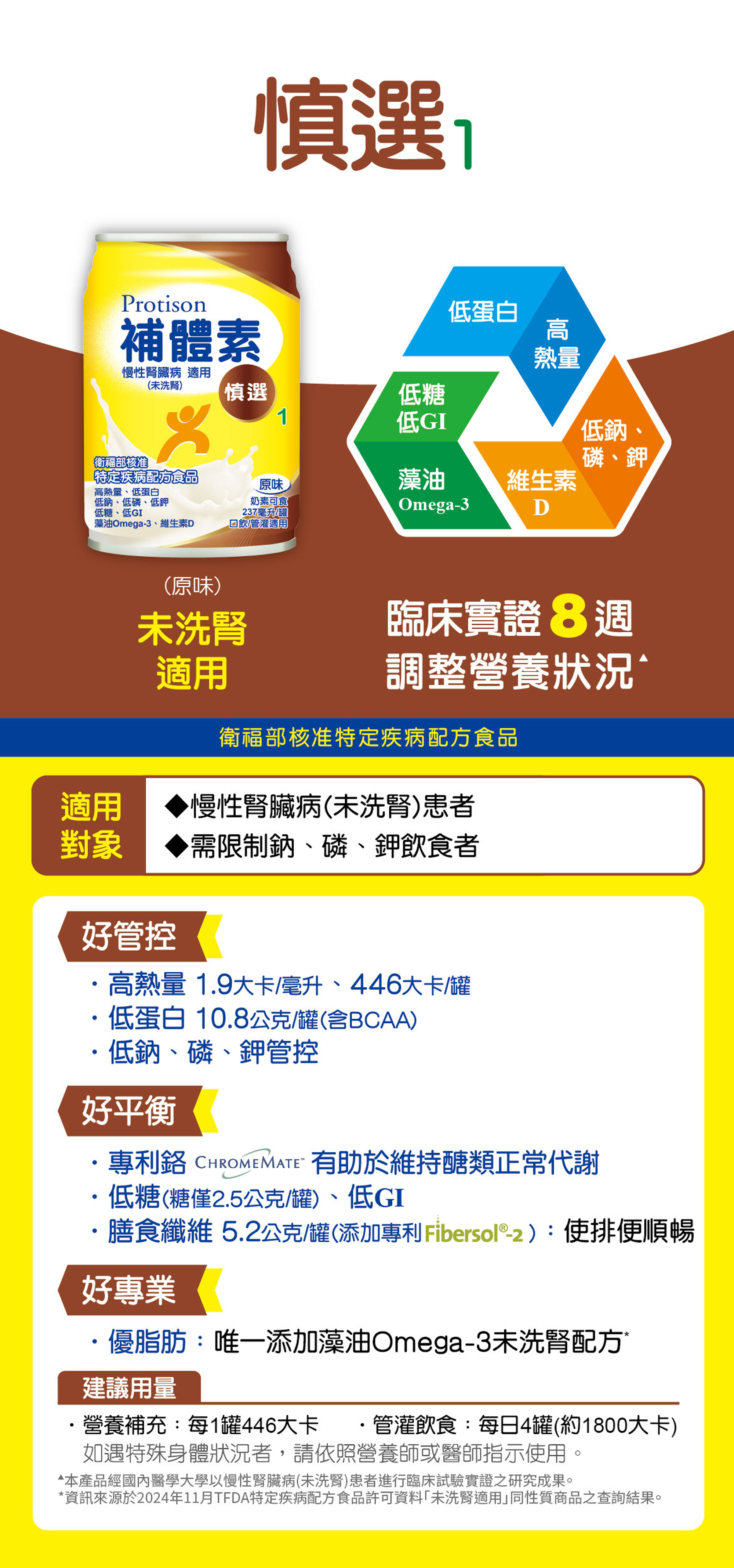 - 蛋白質僅10.8公克/罐,適合需謹慎攝取蛋白質者